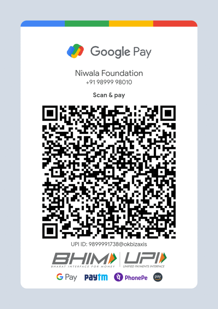 • In case you are a Non-Resident Indians and Indian passport holder and wish to donate, please write to help@niwalafoundation.org or speak at +91-9899998010.